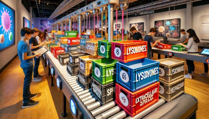 - Students physically interact with exhibits to reinforce abstract cellular functions.