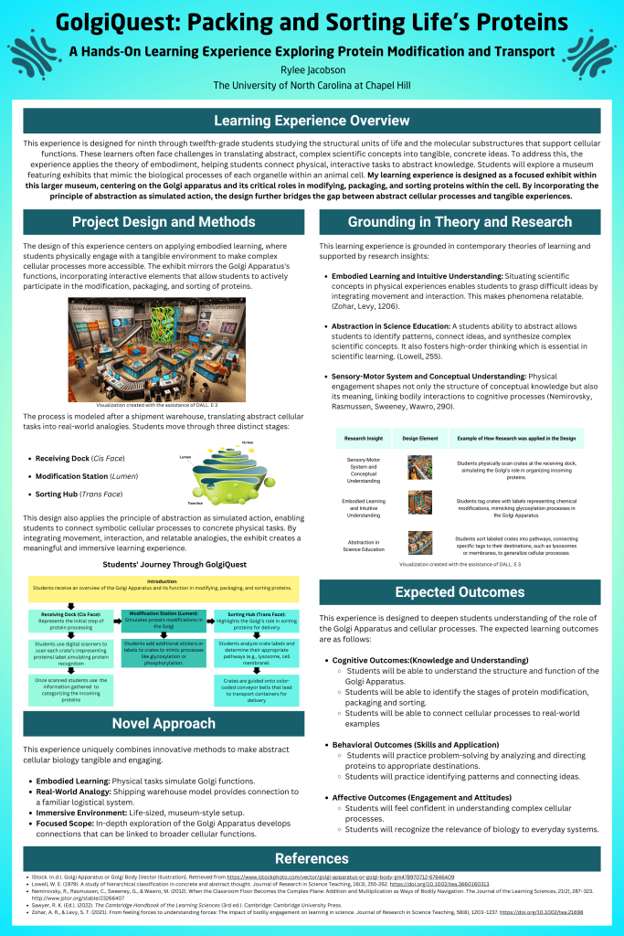 A high school-level interactive learning experience designed to help students understand the Golgi Apparatus and cellular processes. Uses embodied learning and real-world analogies to make abstract biology concepts more accessible.